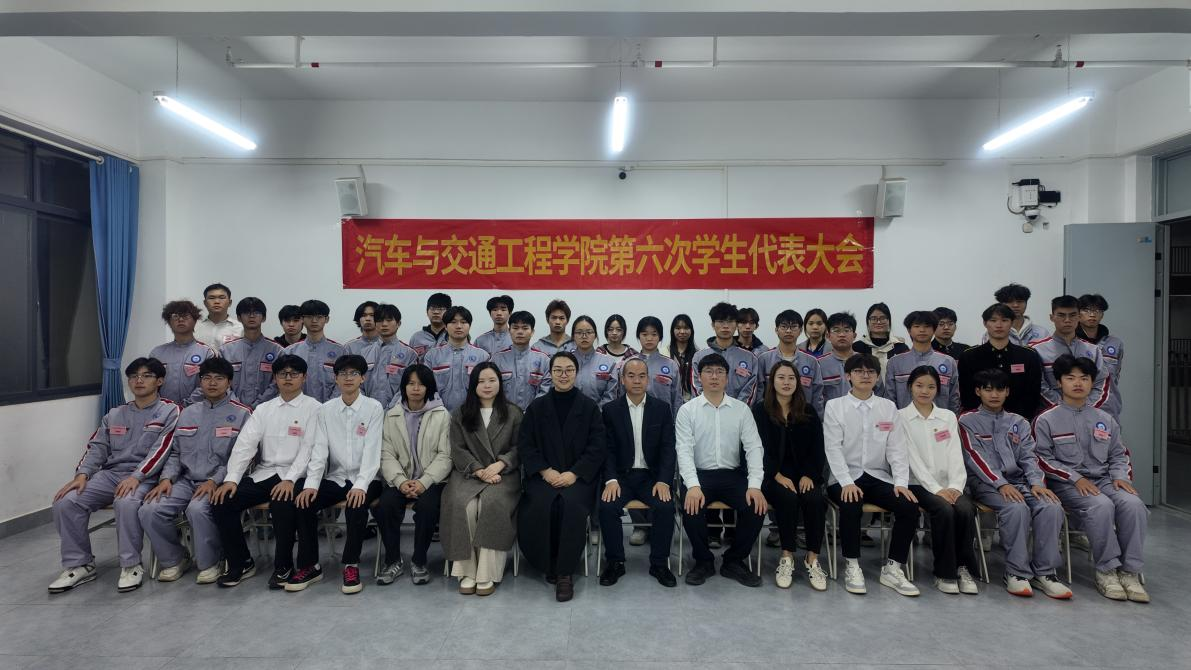 2025年12月29日下午,汽车与交通工程学院第六次学生代表大会在五象校区公共楼703教室顺利召开。学校团委书记唐群、学院党总支书记杨德江、校学生会主席团代表及学院学生代表出席会议。
