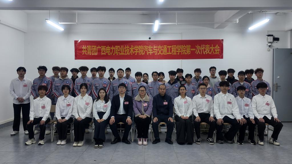 2026年1月6日下午,共青团广西电力职业技术学院汽车与交通工程学院第一次代表大会在五象校区公共楼704隆重召开。学院党总支书记杨德江、学校团委副书记(挂职)廖艳玲、学院团委副书记陈桂谊、专职辅导员及学院学生代表出席会议。