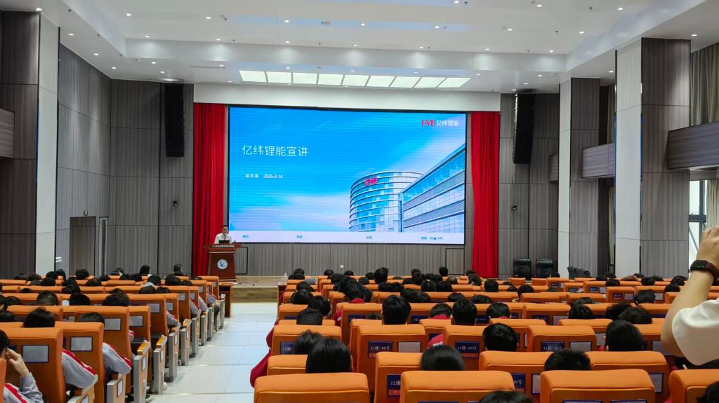 会后,亿纬锂能开展新一届工匠班专场招聘宣讲会,企业人力资源总监梁东来详细介绍了发展前景与岗位需求,现场互动热烈,学生报名意愿强烈。